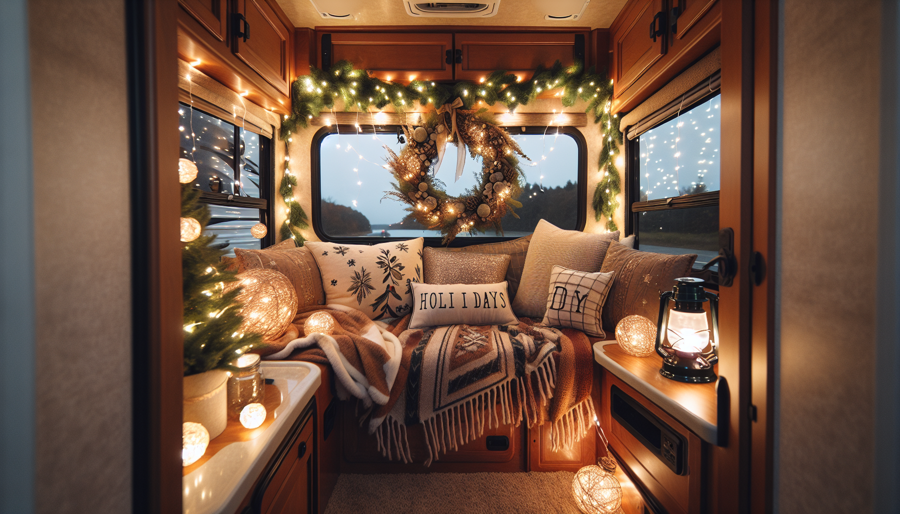 - Use twinkling lights and garlands to add a cozy and festive ambiance to your RV interior.